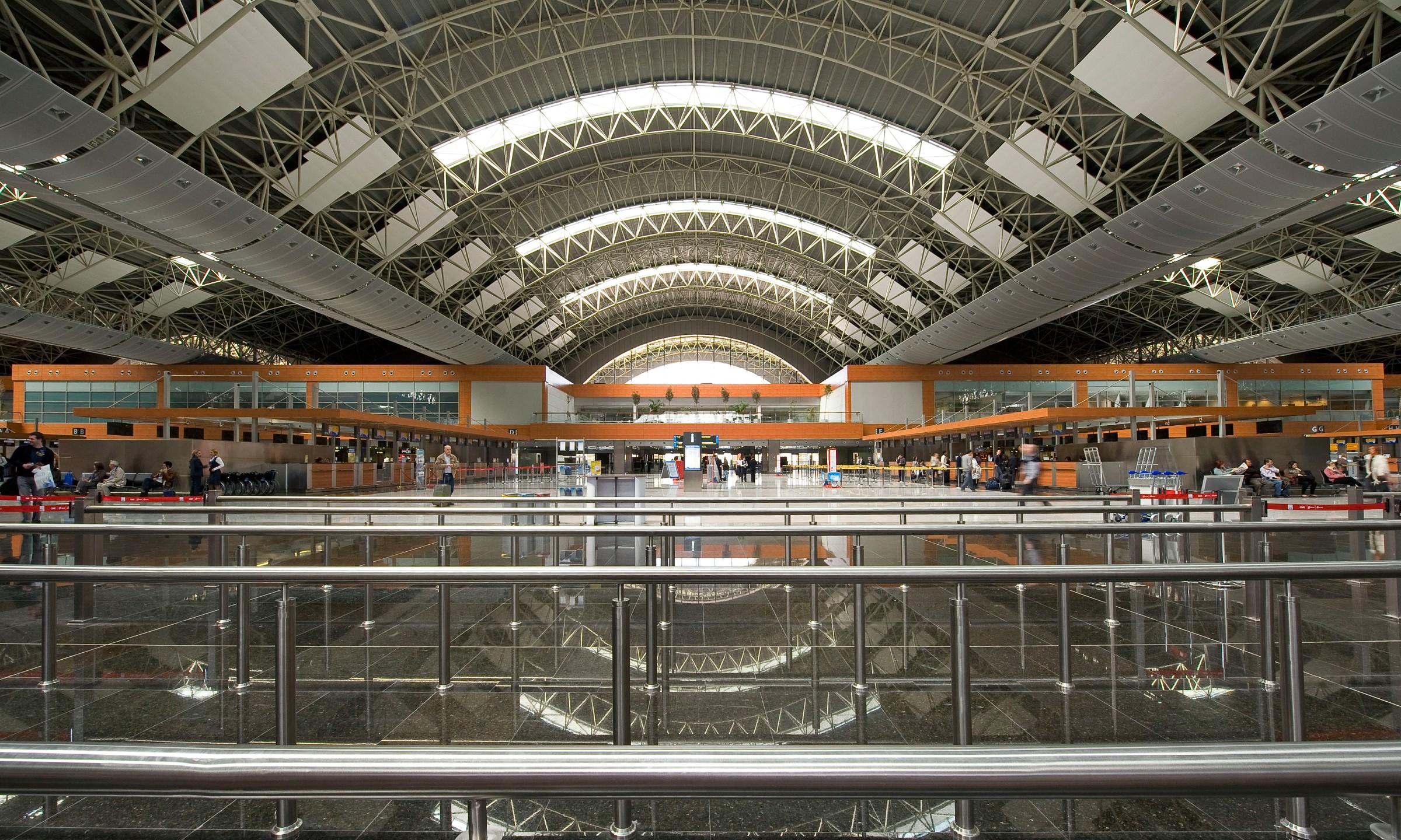 A hybrid structural system strengthened with seismic isolators ensures uninterrupted operation after major earthquakes. Thanks to its flexible planning approach, the terminal has expanded beyond its initial capacity and today serves over 40 million passengers annually.