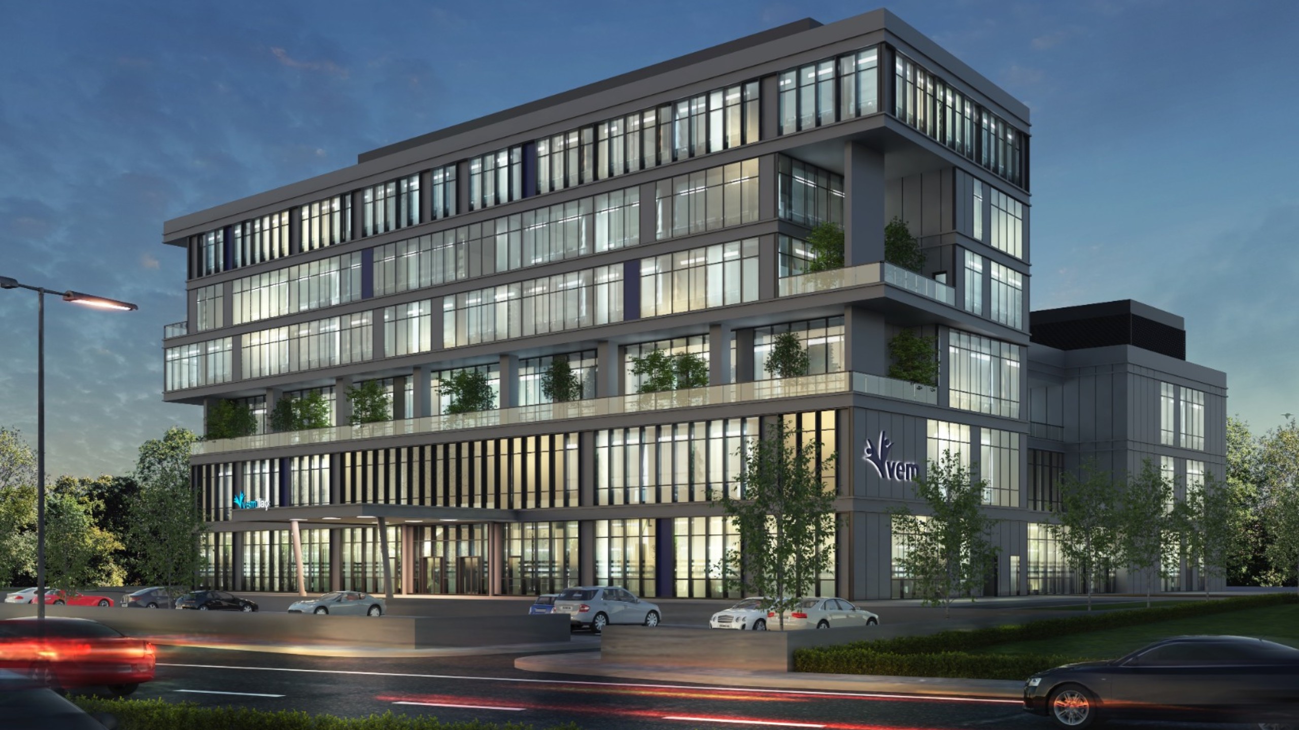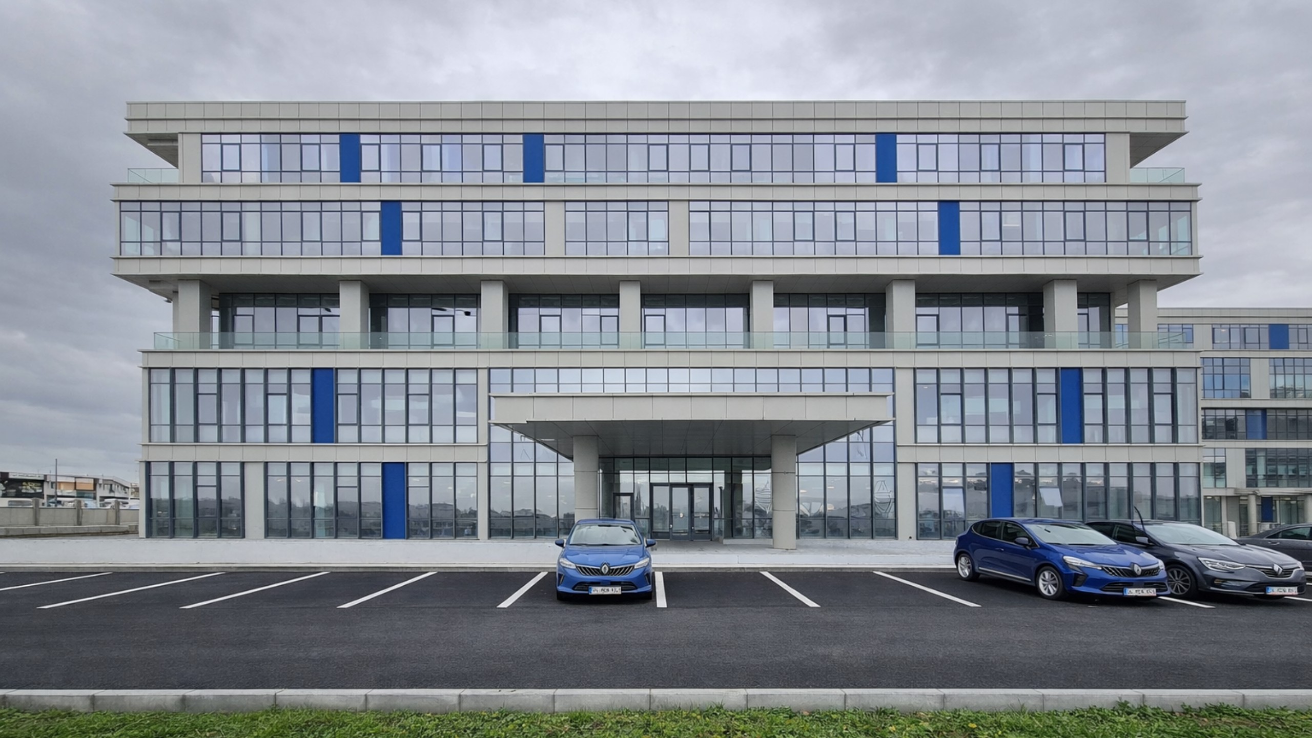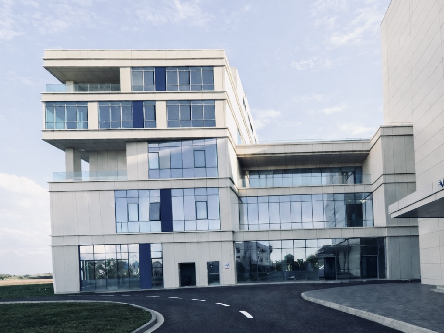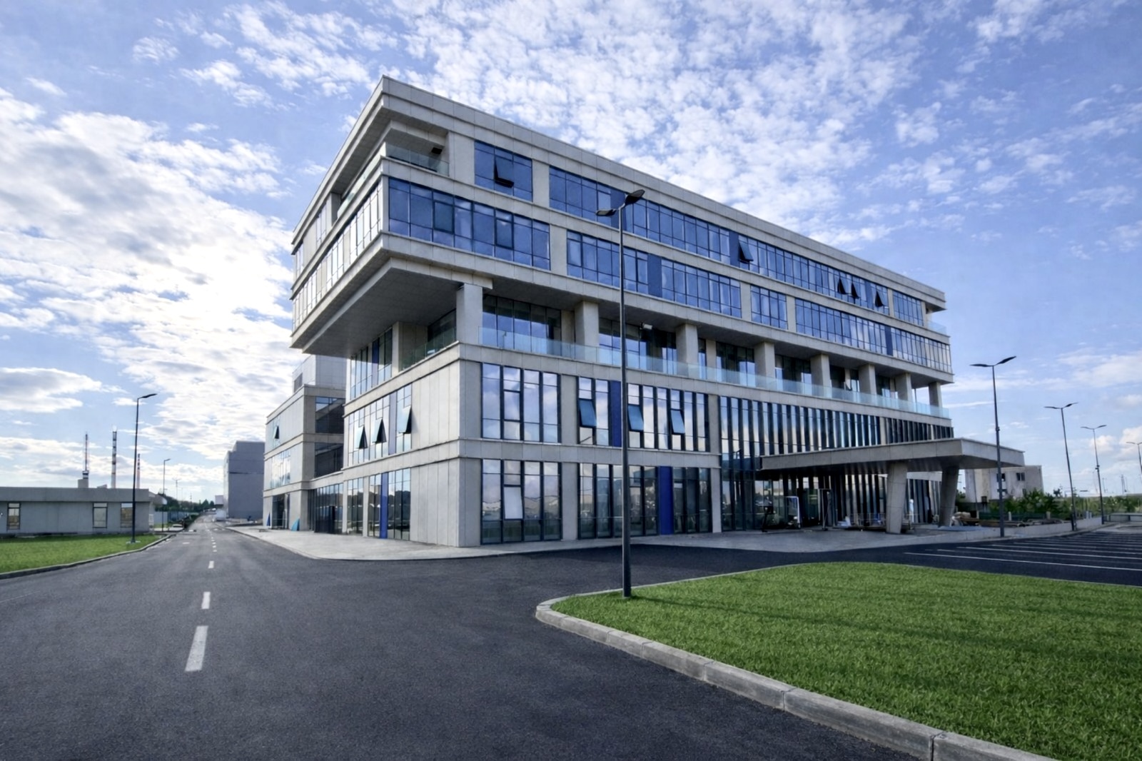 Architecturally, the facade language of the R&D block was designed to mirror the administrative block, strengthening the visual unity visible from the main road. Both blocks share consistent design principles, establishing a coherent architectural identity. In the second plot, reserved areas have been designated for potential future connections and phased expansions.