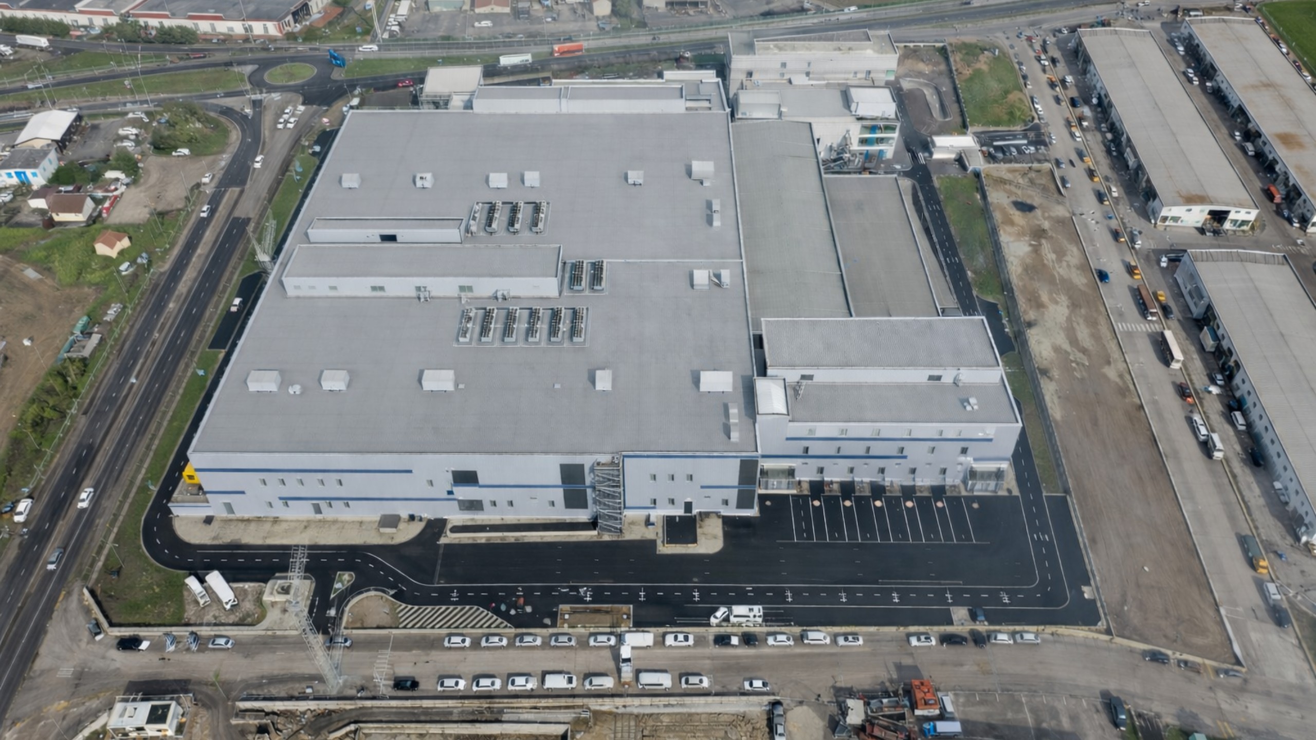Located in the Kırklareli Lüleburgaz Büyükkarıştıran New Organized Industrial Zone, the facility is designed across two separate plots with a total indoor area of 154,115 m². The master plan allocates 149,475 m² to one plot and 4,640 m² to the other, with an underground tunnel ensuring operational continuity between the two sites.